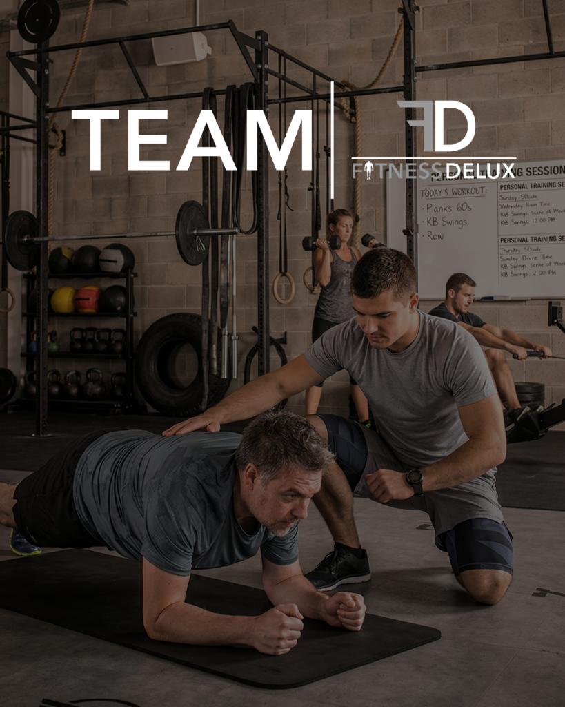 På 1845 Gym erbjuder vi personlig träning i samarbete med Fitness Delux – ett engagerat team med lång erfarenhet av att hjälpa människor nå sina mål inom träning och hälsa.